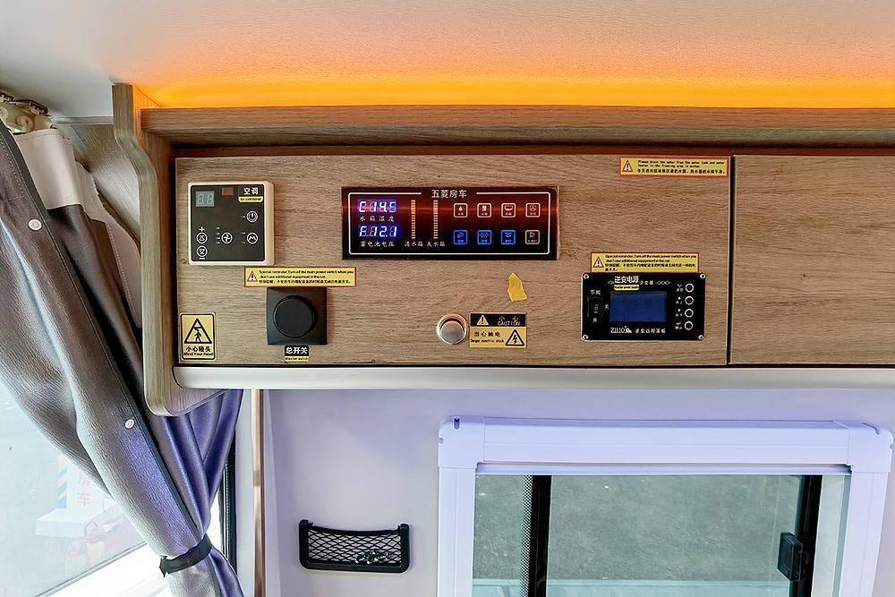 在左侧窗户上部,有一个配电箱,可以查看供电和供水情况。