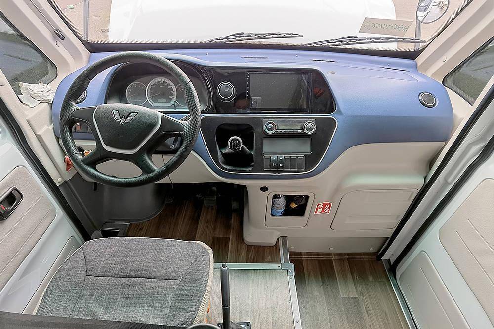 该车的右侧车门位置靠前,大约就是在副驾驶的位置,因此,它没有配备副驾座椅,以方便乘客上下车。至于内饰设计,看上去还是很豪华的,通过蓝色和灰色搭配,显得比较时尚,还配备了机械仪表盘和中控屏幕等,不过方向盘光秃秃的,没有多功能按键,挡杆位置比较靠上,换挡十分顺手。